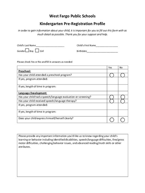 West Fargo Kindergarten Registration. To help us prepare for your student's.